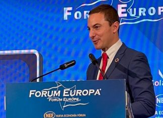 Desayuno Europa Press. Nueve y media de la mañana. Auditorio Meeting Place, Paseo de la Castellana 81. El número 81 del paseo está impreso...