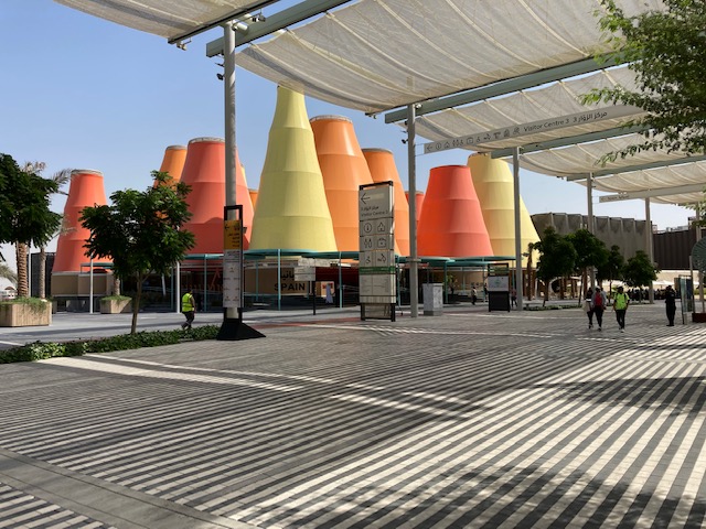 Las grandes avenidas que cruzan toda la Expo, tanto en sentido norte-sur como este-oeste permiten otear en poco tiempo la gran variedad y contrastes entre los pabellones que enarbolan las banderas de 185 países. Una obra gigantesca, con un coste de 7.000 millones de dólares, destinada a su desmantelamiento al cabo de los seis meses que durará la exhibición. Quedará para la posteridad la adyacente Villa Expo, que, a imagen y semejanza de las villas olímpicas, se convertirá en un barrio más de Dubái. También algún o algunos pabellones que sean “indultados”, es decir los que por su valor arquitectónico y originalidad merezcan ser salvados de la quema. El español podría ser uno de ellos, toda vez que ya ha sido visitado varias veces por varios miembros de la familia real emiratí, que han alabado la originalidad de la presentación española. Para que ello fuera posible, habría que encontrar un destino y una función útil al edificio más allá de la pura exhibición. Y, en consecuencia, si su mantenimiento corriera entonces a cargo de España o del país anfitrión.